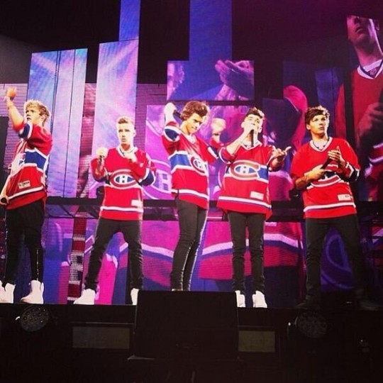 Los chicos de 1D siempre se ponen el uniforme del deporte rey del país en el que están tocando. ¿Adivináis qué deporte es este? ¡Exacto! Hockey sobre hielo.